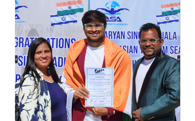 Seafarer honouring a Swimmer. A proud moment for India as 21-year old Aryan Singh Dadiala created world record for the fastest male to crossing of “Sea of Galilee” in Israel 20.5 Kms in 06 hrs 15 mins 00 sec.